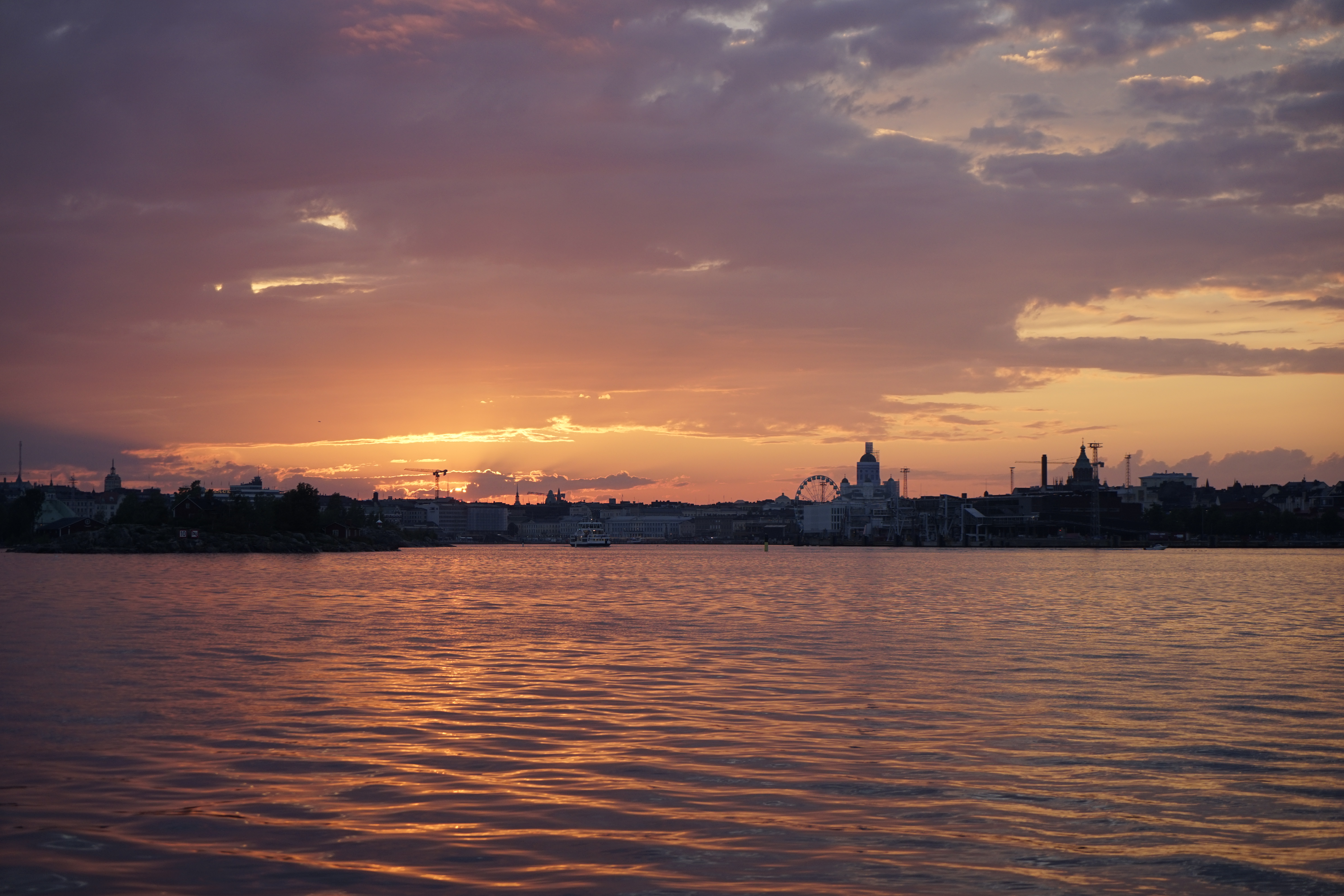 Helsinki in the sunset. Seen from the Baltic Sea.